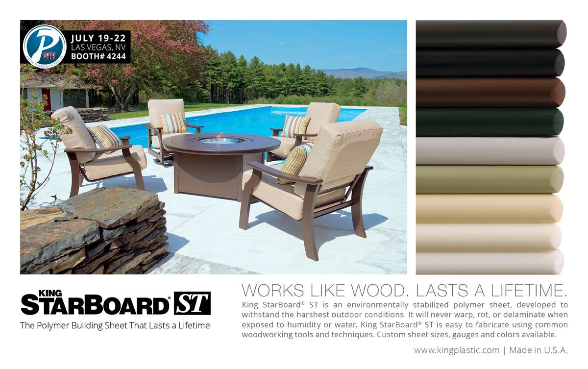 King StarBoard® ST is an environmentally stabilized polymer sheet, developed to withstand the harshest outdoor conditions. It will never warp, rot, or delaminate when exposed to humidity or water. King StarBoard® ST is easy to fabricate using common woodworking tools and techniques. Custom sheet sizes, gauges and colors available.