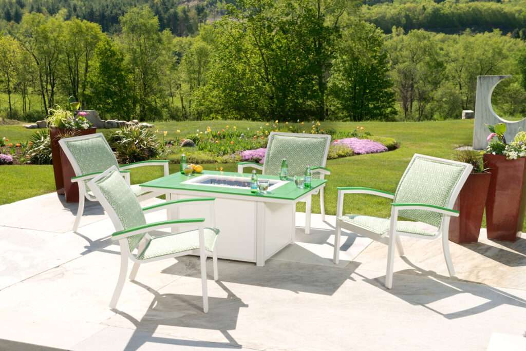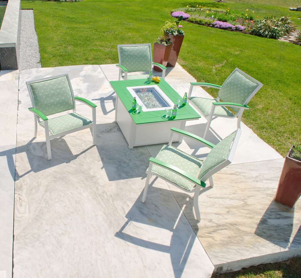 As shown: Outdoor furniture chairs and fire table made with King StarBoard® ST.